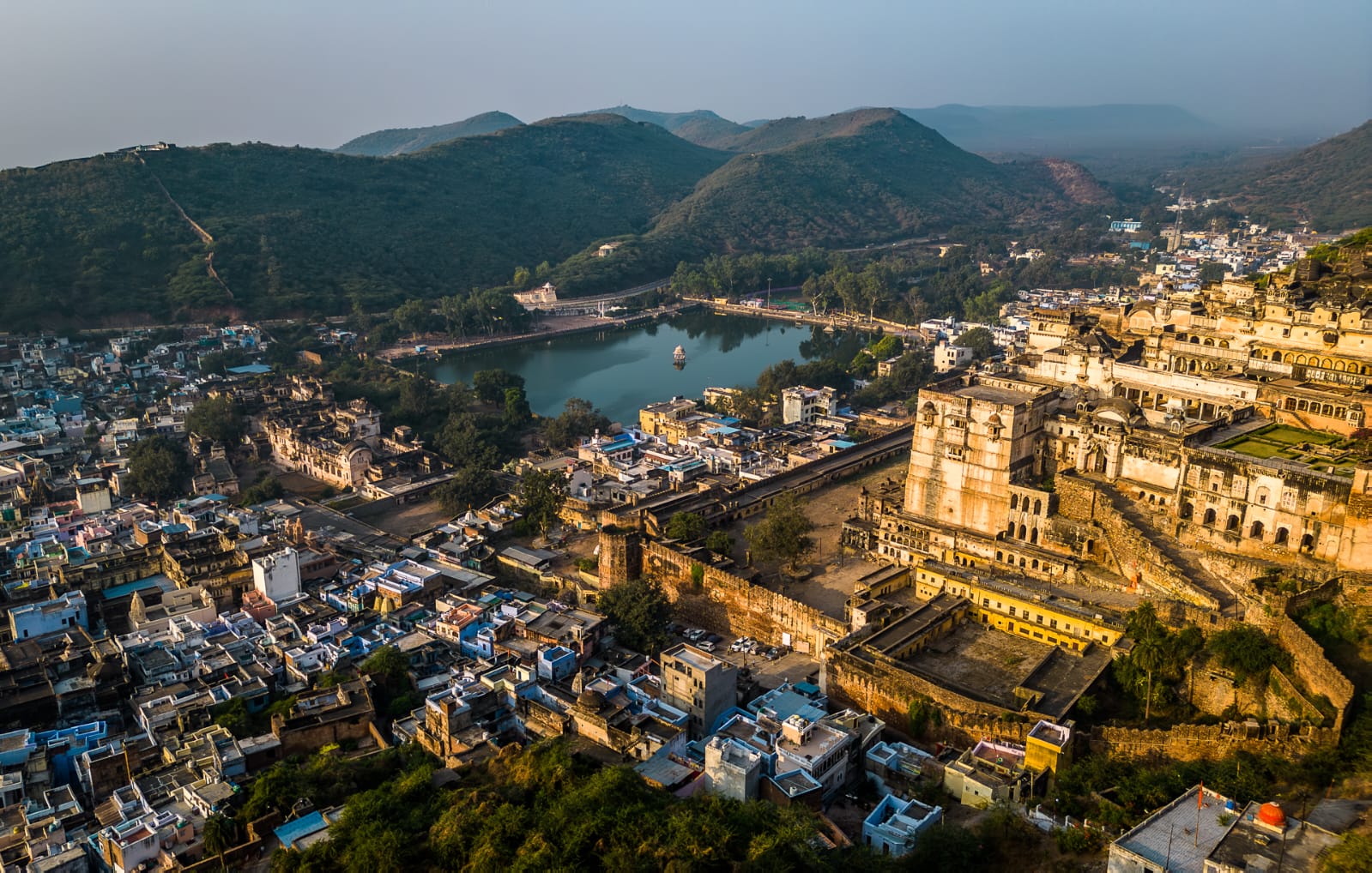 This haveli offers eye-catching views of Nawal Sagar Lake, Taragarh Fort, Bundi Garh Palace, beautiful hills, fortresses, and cenotaphs located atop the hills.