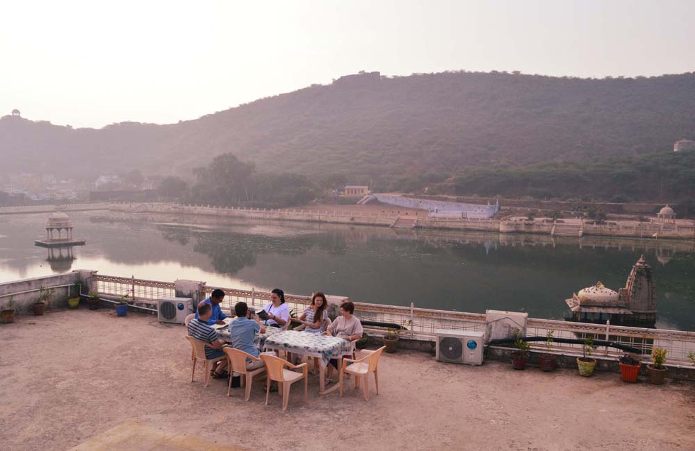 Hotel Annpurna Haveli has two restaurants: one indoor restaurant on the first floor, and one rooftop open terrace. Guests can enjoy their meals with stunning views of the lake, fort, palace, and lush green hills.